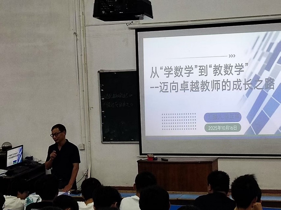 讲座特邀两位资深中学教师担任主讲嘉宾。邵东城区三中谢端雨老师以“教室里面充满‘爱’——基于33年班主任工作的点滴体会”为题,结合真实教育案例,阐释了“爱”在教育过程中的核心作用;邵阳市大祥一中徐正祥老师则以“从‘学数学’到‘教数学’——迈向卓越教师的成长之路”为主线,系统分享了其三十年教学实践中积累的宝贵经验与成长路径。