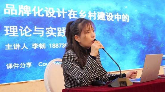 在会上,李韧老师以《品牌化设计在乡村建设中的理论与实践》和《他山之石·可以攻玉 之地方院校品牌化设计赋能乡村振兴》为内容进行了主题讲座。她通过丰富的案例讲解如何以品牌化为支点撬动乡村振兴难题,并分享了她自己带领团队的实战成果,以及高校志愿服务助力乡村发展的各种活动、竞赛、科创平台等,为邵阳市和美乡村建设全域提供邵阳学院的智慧和力量。