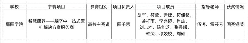 “智慧康养”项目由邵阳学院护理学院辅导员伍涛老师、雷芬芳院长共同指导,结合本专业特色,通过走访邵阳市多家社区和康养机构实地调研,针对脑卒中病人的痛点难点问题,以脑卒中康护为中心,建立“泡、灸、蒸、调、养”五种康养服务为一体的智慧康养小家、康护康养专业技能培训课程体系和一站式居家康护服务模式,为脑卒中人群提供康养服务,让更多脑卒中患者重拾生活信心,提高生活质量!