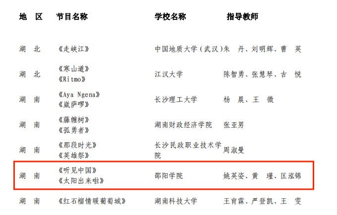 6月12日,备受瞩目的全国第七届大学生艺术展演活动获奖名单公布,我校音乐舞蹈学院选送的声乐节目《听见中国》《太阳出来啦》荣获艺术表演类二等奖。