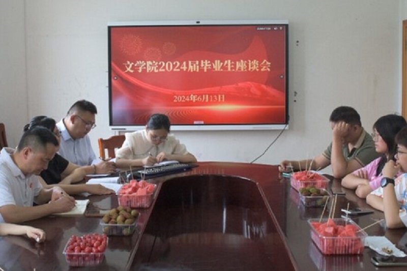 毕业季来临,毕业生们怀着憧憬将踏上新的人生旅程,为引导文学院毕业生更好地走上岗位、服务社会,2024年6月14日,文学院于系办公楼5楼会议室开展“2024届毕业生座谈会”,积极听取毕业生对文学院教育、管理和服务的意见和建议,进一步明确持续改进工作方向和内容。文学院党总支副书记肖飞宇、副院长吕俭平、学工秘书曾鹏、教务秘书彭国、2020级辅导员周慧及毕业班各班学生代表参加本次座谈会。本次座谈会由党总支副书记肖飞宇主持。