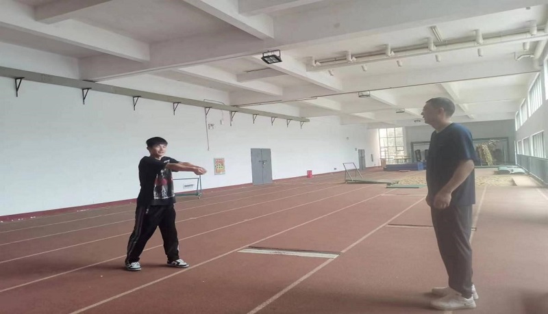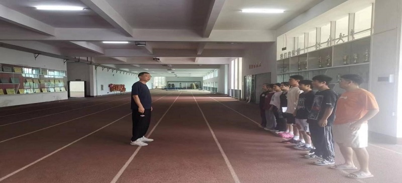 2024年5月16日,体育学院郭朕、罗跃平等老师在邵阳学院室内田径馆为参加2024年师范生教学技能竞赛的选手进行专业培训和指导。