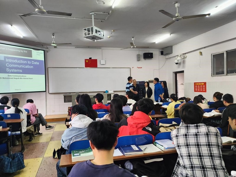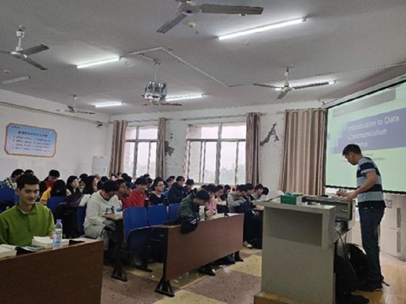 三月的校园,春雨纷飞,长虹赋彩,满是春日的奏响曲。国际学院中外合作办学项目通信工程专业学子们带着期待,满怀求知的热情,等待着本学期第一节外教课的到来。3月25日,随着第一节课铃声的响起,外教老师Naguib按时来到教室,开始了《Data Communication》课程的教学。