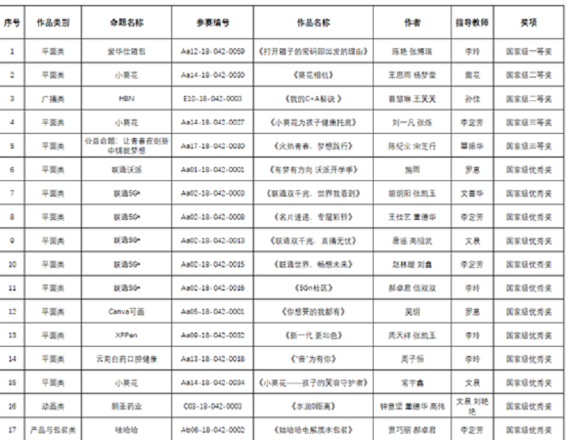 第15届全国大学生广告艺术大赛国赛获奖名单