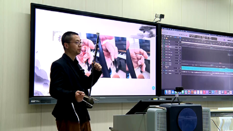 音乐舞蹈学院青年教师贺思敏首次运用信息化技术手段改革传统二胡教学课堂,实现二胡、录音、编曲三大专业交叉融合,他在二胡课程中首次创新6+3教学模式,6大系统,3大信息化教学辅助手段。并形成音波AI智能分析系统、动态乐谱、音乐再渲染3大原创资源库。让二胡传统教学突破了找音难,看谱难,单调枯燥,情景再现难4个教学难点。同时,其通过手机端课程中心同步推送《二胡演奏》线上课程,课程建设有思政库、器乐理论库等多个资源库,包含文档、视频、音频等素材千余个,运用多个网络平台,将课堂知识分解,形成碎片化知识,满足学生课后随时随地的学习与探讨,播放量达10万余次,二胡教学课堂散发出新的活力,得到学生与同行一致好评。